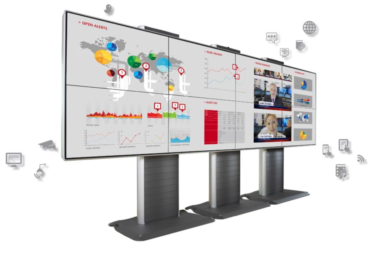 For this package, Barco selected the 55" OverView HVD5521 and KVD5521 tiled LCD video wall panels. With their extremely thin gap, they form a great looking, bright video wall in 2x2, 3x2 or 4x2 setup. The Instant VideoWall is also available in combination with the OBLX or OBPX series free-standing structure, enabling you to position the video wall anywhere, without the need for wall support.